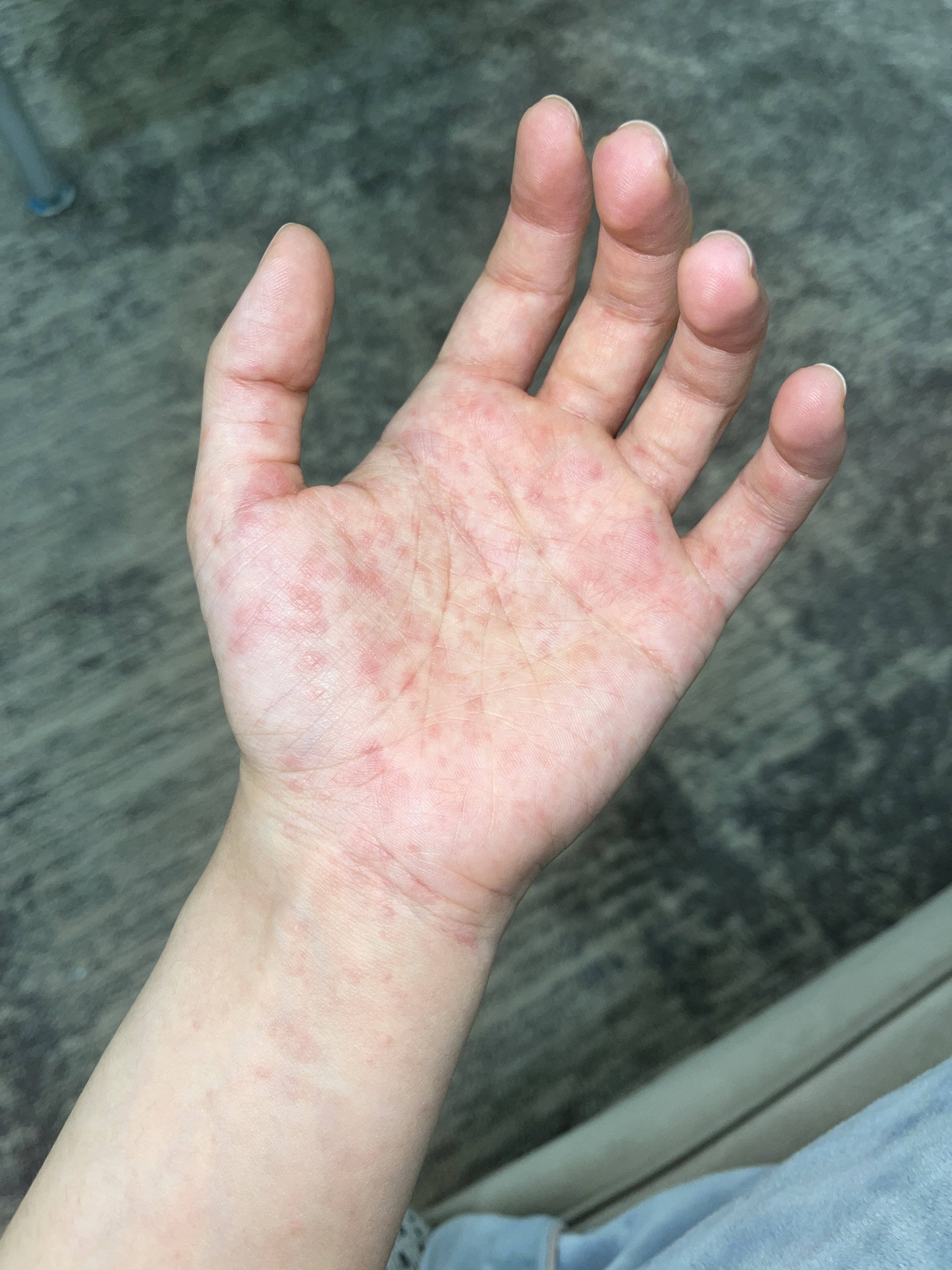 السلام عليكم .. انا فجأه انتشرت في كف اليدين عندي حبوب حمراء صغيره وبدأ ينتشر في الذراعين .. يسبب لي الحكه فقط عند لمسه