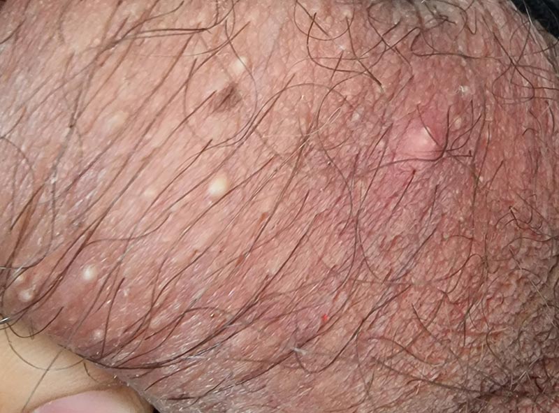 ظهور حبوب مزمنة كل فترة وفترة. بداية كانت على جسم القضيب بعدها راحت بعدها صارت تنتشر على كيس الصفن